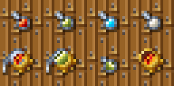The download consists of a PSD file and two PNG files (one with shadow and one without); the potion frames are 16x16 delicious pixels.